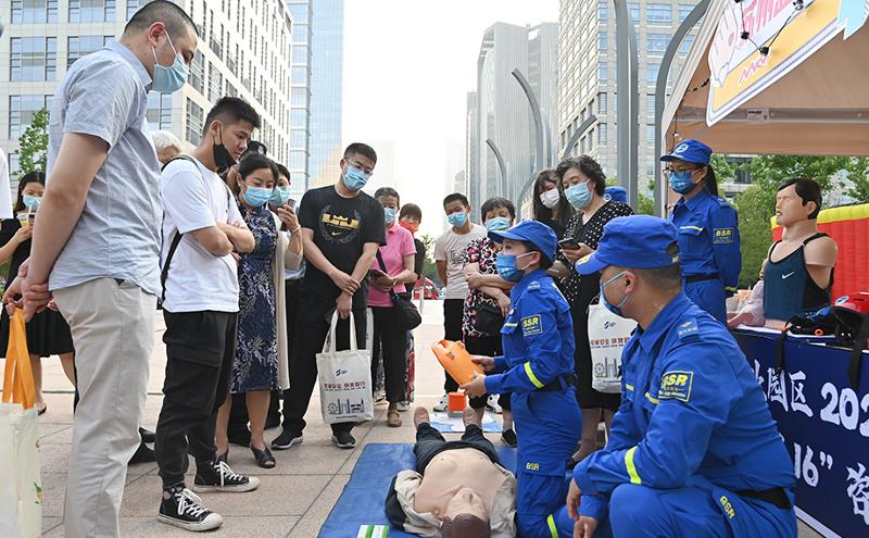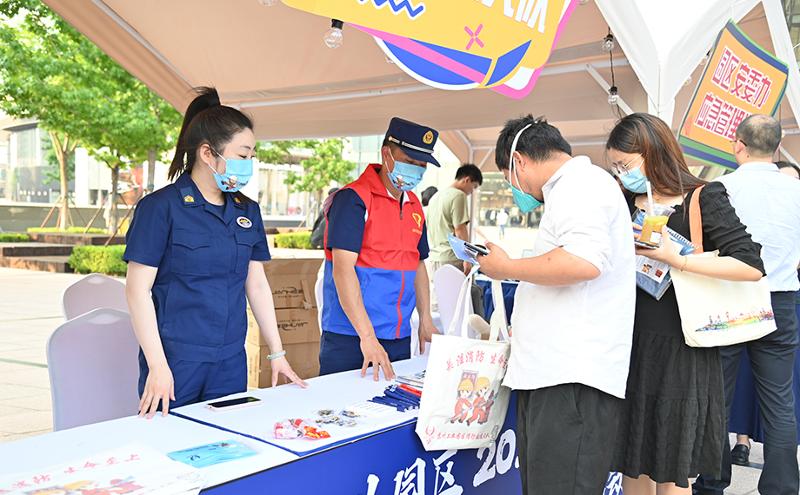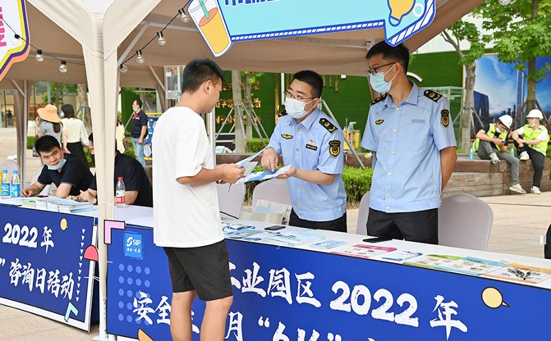 “您知道乘坐电梯有哪些注意事项吗?您可以领取一份手册了解一下。”“驾驶电动车出行时,牢牢戴好头盔是重中之重。”活动现场,园区规建委、市管局、社会事业局、消防大队、交警大队等十余个安全生产委员会成员单位设立咨询点位,接受居民咨询,进行政策解读,发放安全宣传资料。居民们有的驻足点位前详细了解相关法律法规,有的热情高涨直奔游戏互动区,还有的认真好学跟着工作人员学习急救步骤和动作,现场氛围热烈又融洽。